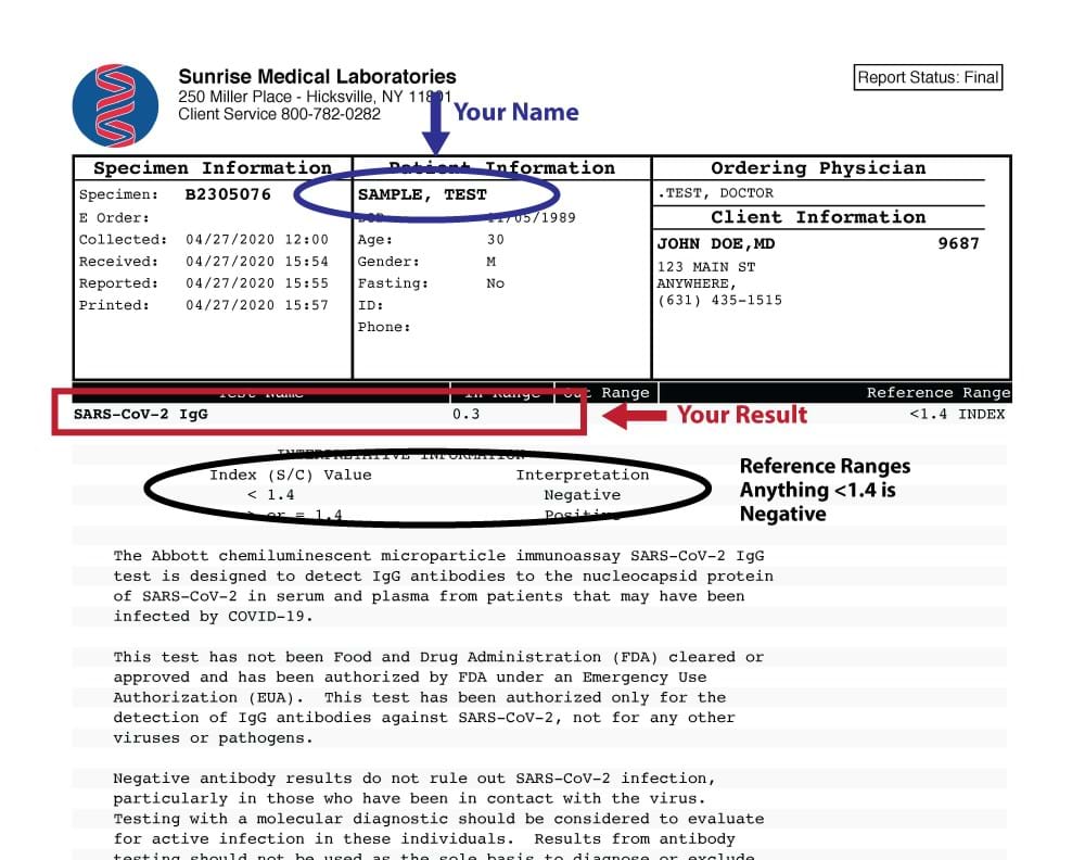 The Serum Antibody IgG (Blood Test) will detect if you have had prior exposure to COVID-19 and have built an antibody for the virus. For most viral illnesses, a positive antibody means prior exposure to a virus and some degree of Immunity to future infection. As COVID-19 is a novel (new) infection, it is unclear if a positive antibody definitively offers immunity. Most experts agree it likely does, however the recommendation is to still practice universal precautions.